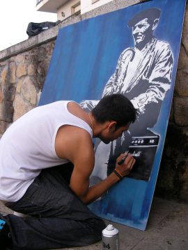La segunda la marcaron dos factores: el tiempo y el espacio, el cambio de siglo y el traslado a la Ribeira Sacra, en la Galicia de sus abuelos. Esta nueva vida llega cargada de novedades, como su formación como cocinero profesional, un mundo nuevo que, aun sin darse cuenta, impregnará su obra, llenándola de nuevos ingredientes. Su relación con el arte urbano cambia, se encuentra en el rural gallego, alejado de las áreas fuertemente urbanizadas donde nació, creció y se formó. La realidad le obliga a explorar nuevas técnicas, nuevos formatos… y a adquirir paulatinamente una concepción y un punto de vista diferentes acerca del arte urbano, que entiende y afronta de otra manera. Cambia la motivación, ya no busca la reivindicación personal e individual, ya no le dirige el ego, ya no busca riesgo ni competencia, cosas más propias de una realidad y paisaje netamente urbanos. Impresionado por los trabajos de gente como Bleck le Rat, Banksy, C215 o Roadsworth, entre otros, Michelín Rodríguez se enamora de la técnica del stencil, buscando una vía propia que le permita comunicarse con los humanos que ven su obra… y con su entorno. Su pasado de artista urbano le sigue arrastrando a la calle, donde interactúa en espacios públicos, dejando su especial huella en un punto del mapa donde, hasta hace muy poquito, nadie había osado a hacerlo con su frescura y su valentía.